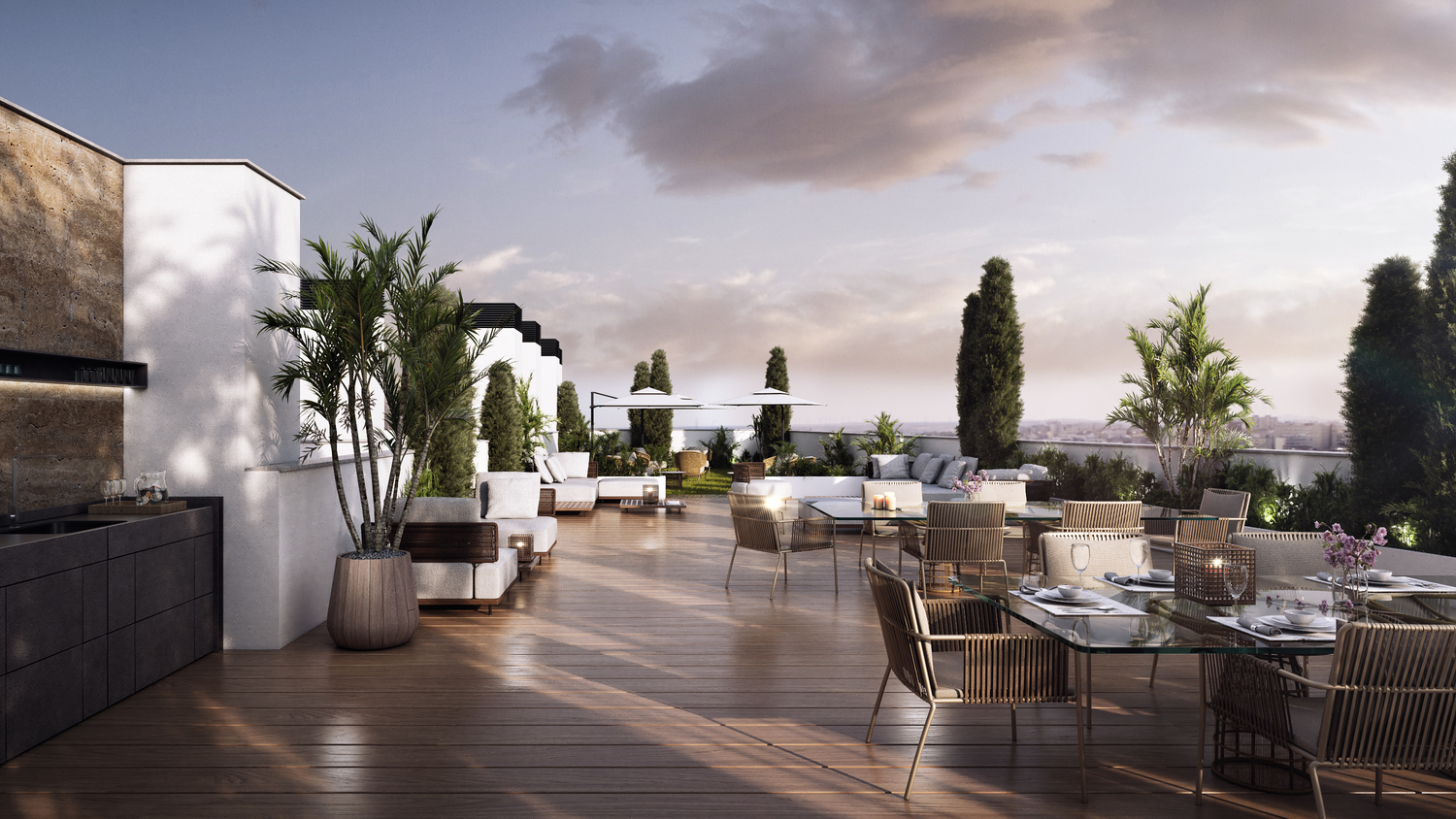 Se nos solicitó la producción de un conjunto de imágenes que permitieran definir la exclusividad de cada una de las estancias y espacios, donde se nos solcito implementar el diseño y la ambientación de los mismo. Nos decantamos por luces medias, de atardecer para las imágenes exteriores y por luces menos contrastadas para las imágenes interiores para resaltar cada uno de los elementos exclusivos que componían el diseño, así con un ambiente más calmado y elegante.