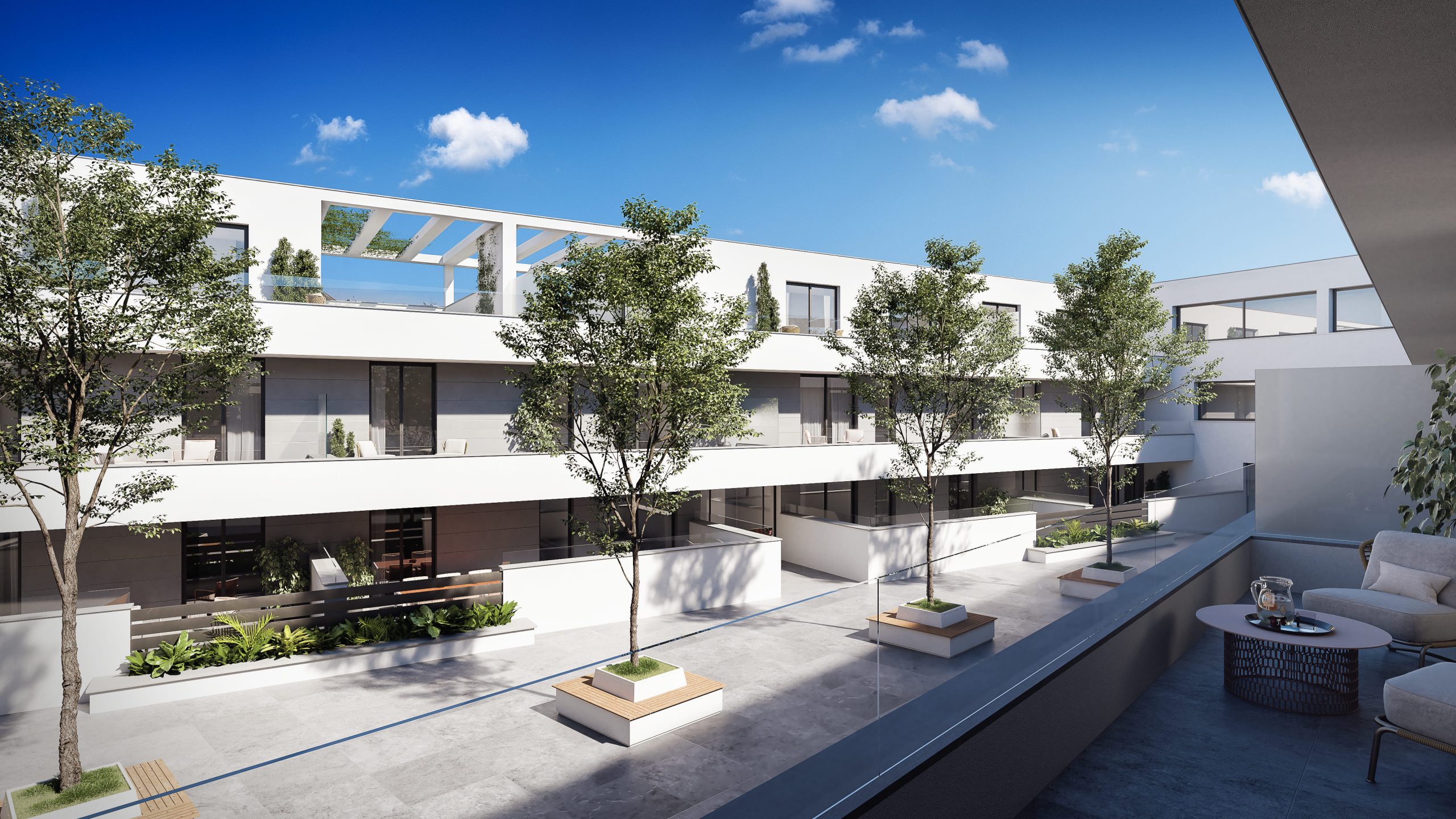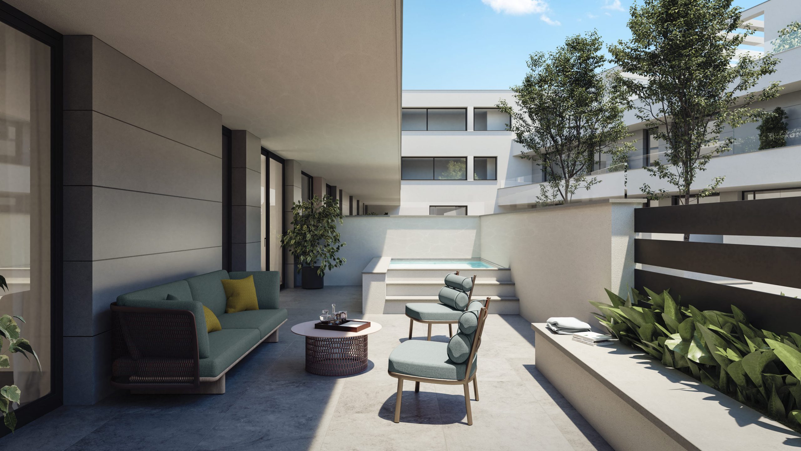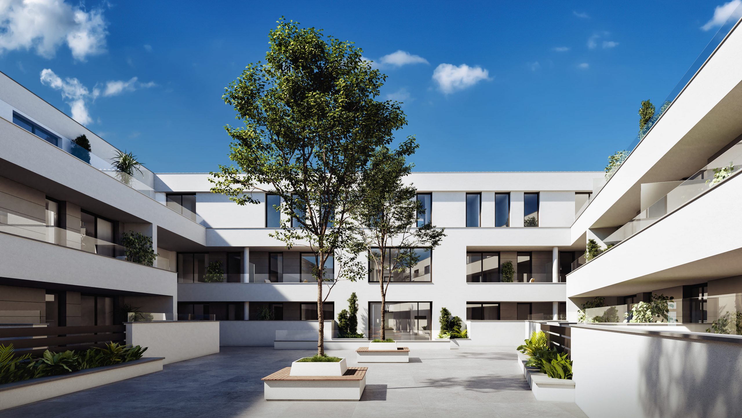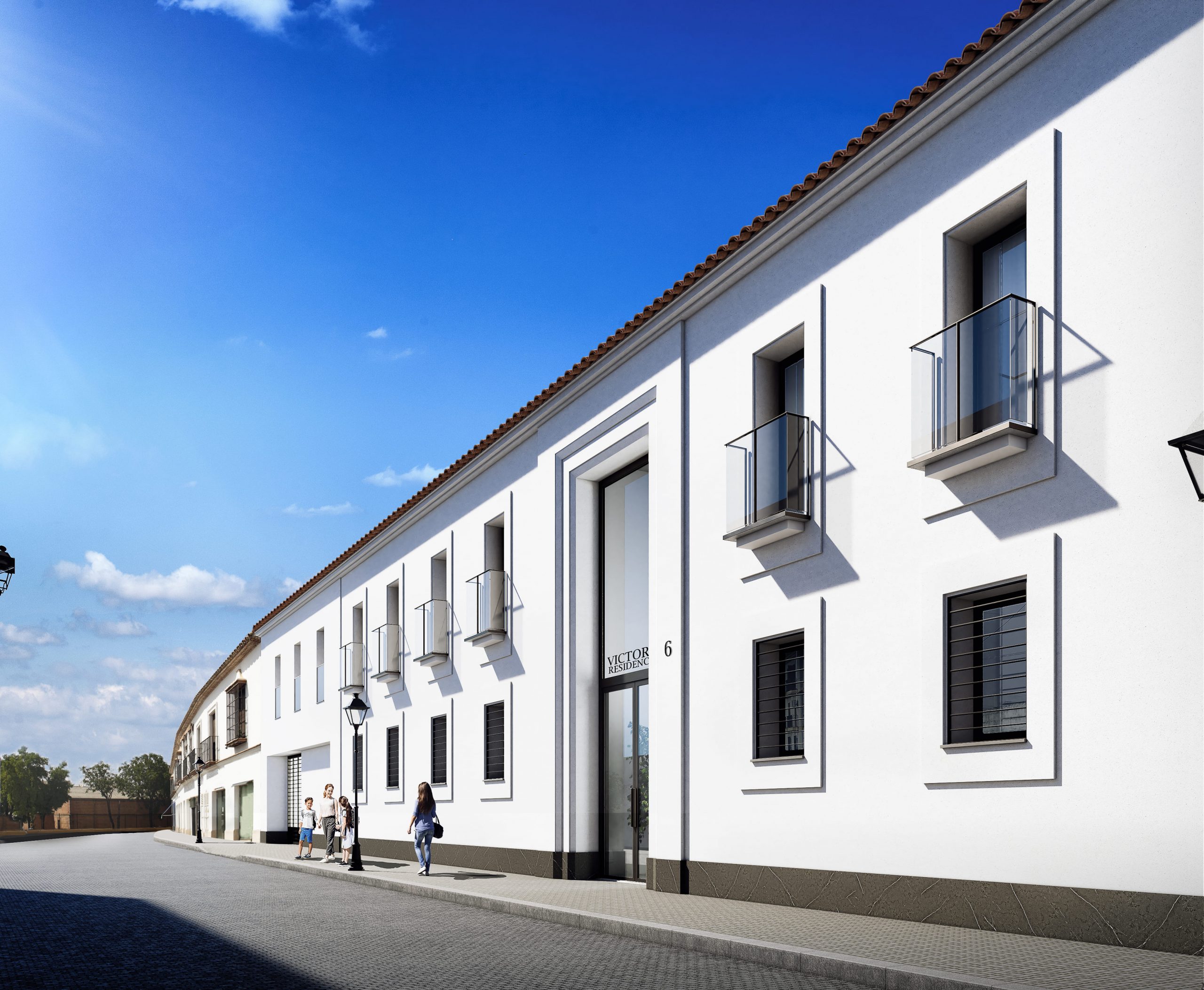 Se nos encargó el desarrollo de un reportaje integral de imágenes del proyecto para su posterior comercialización, de ahí que optásemos por un estilo novedoso y fresco, donde desarrollamos variantes de la rehabilitación de la fachada que había que respetar, ambientación de los espacios comunes y el desarrollo integral de una de las tipologías más representativa del conjunto residencia, donde desarrollamos el diseño interior.